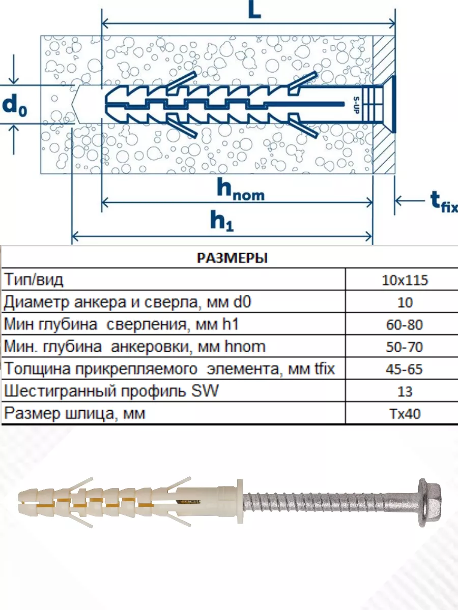 Анкер фасадный 10x115, SORMAT S-UF 10 шт.