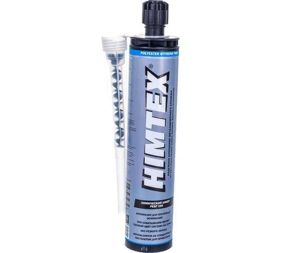 HIMTEX PESF 300 мл, полиэстер, для пустотелых оснований и бетона + 1 насадка CAN150300 быстро схватывается.
