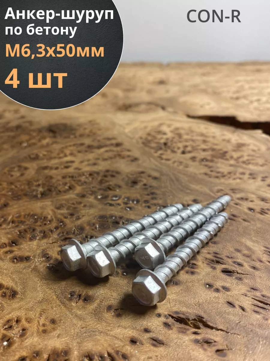 Анкер-шуруп по бетону М6,3х50 мм CON-R , 4 шт.