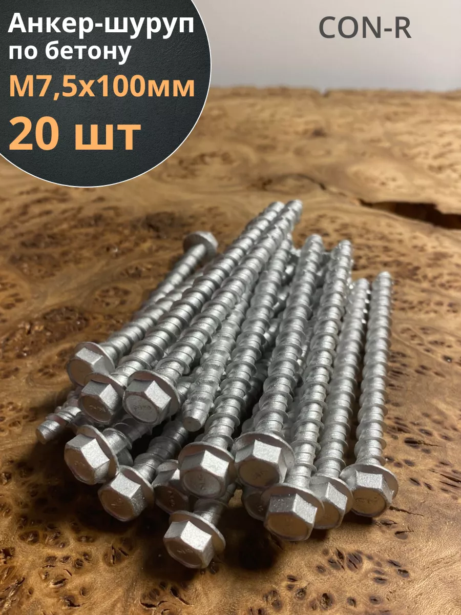 | Анкер-шуруп по бетону М7,5х100 мм CON-R , 4 шт. | аш75100 | 1 шт. |