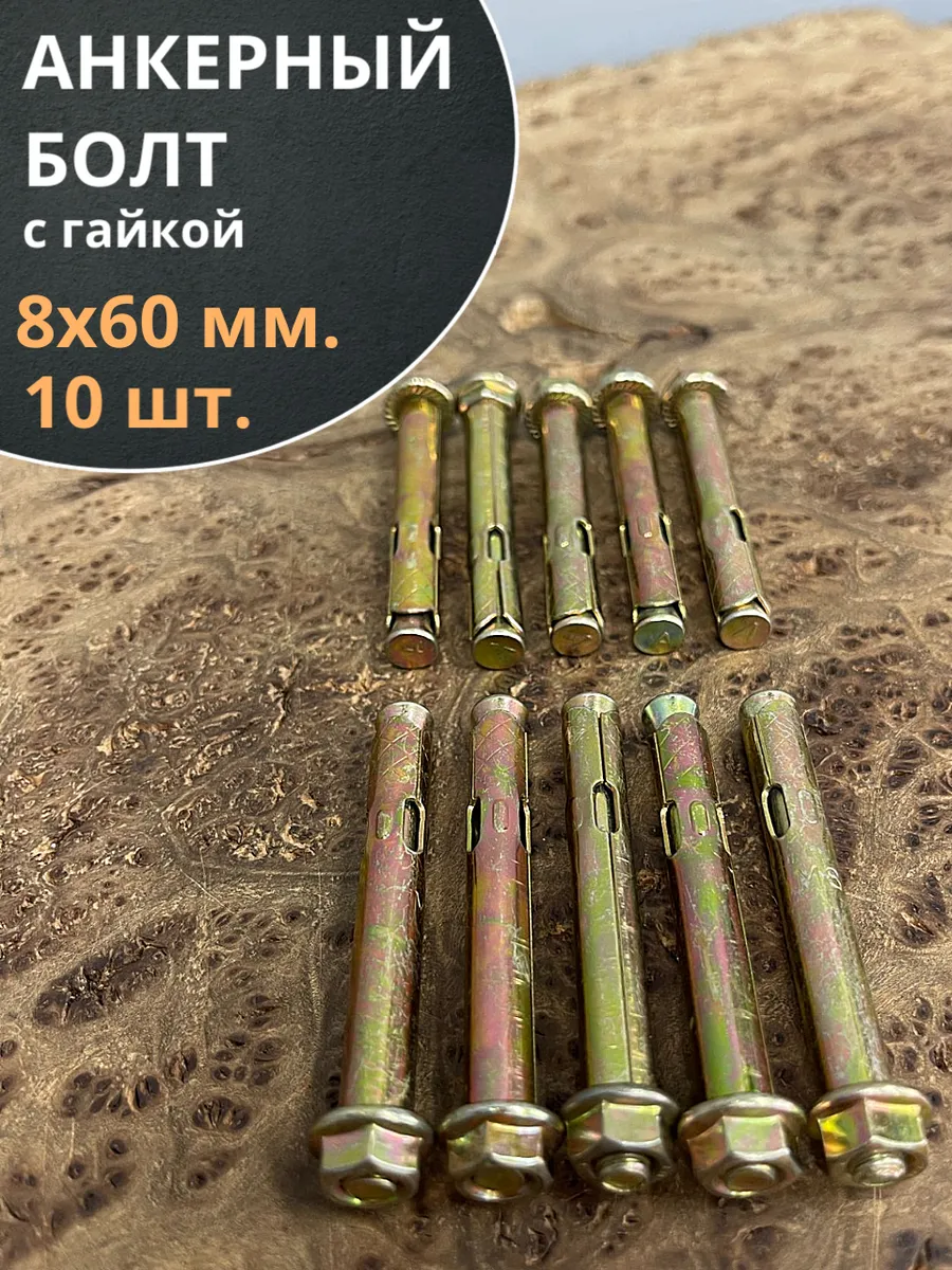 Анкерный болт с гайкой 8х60 мм, 10 шт.