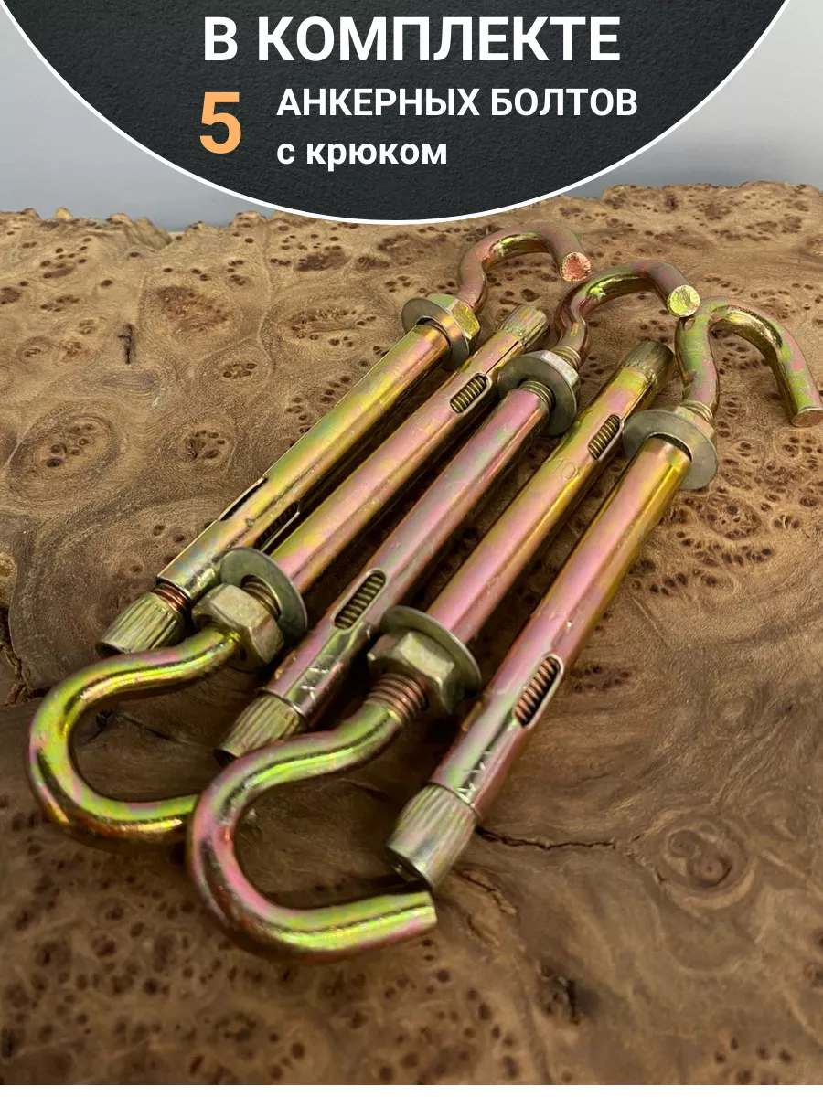 Анкерный болт с крюком 10х80 мм, 5 шт.
