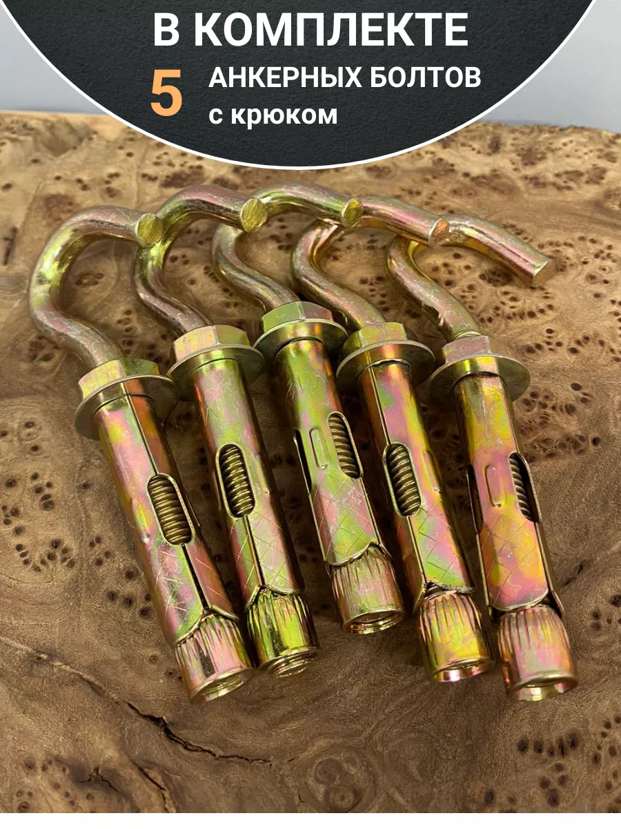 Анкерный болт с крюком, 5 шт.