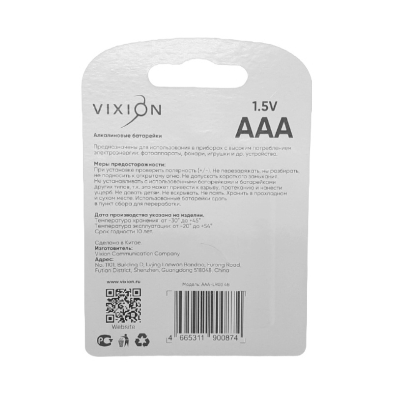 Батарейка алкалиновая LR03-AAA 4 шт VIXION