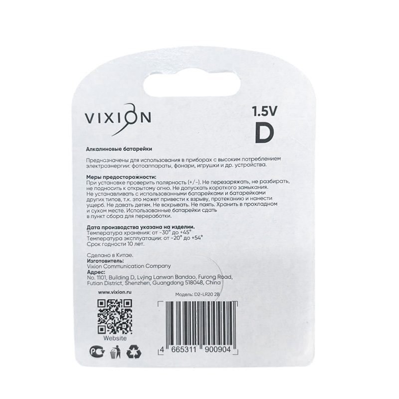 Батарейка алкалиновая LR20-D2 2 шт VIXION
