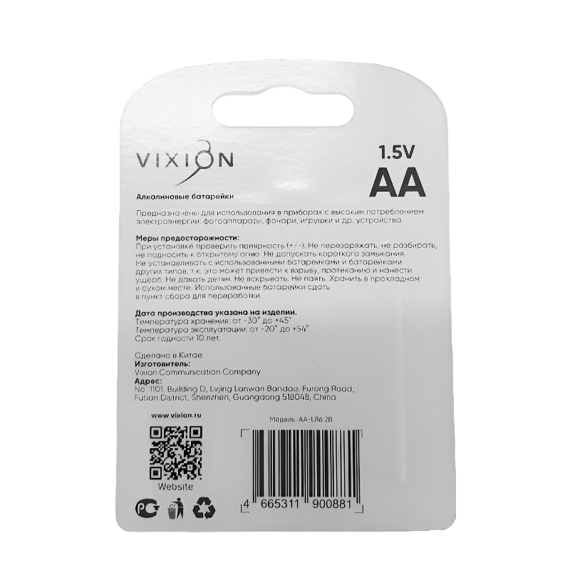 Батарейка алкалиновая LR6-AA 2 шт VIXION