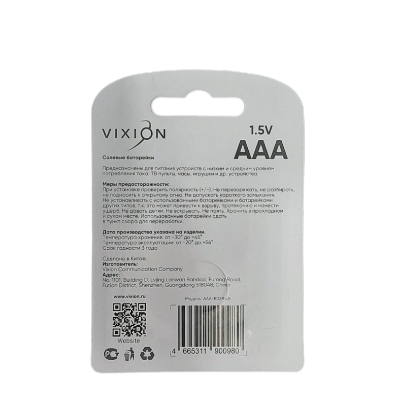 Батарейка солевая R03P-AAA 4 шт VIXION