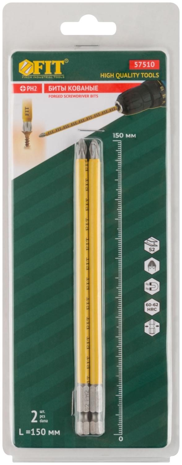 Биты кованые, сталь S2, одностор. 150 мм РН2, 2шт. Профи, блистер