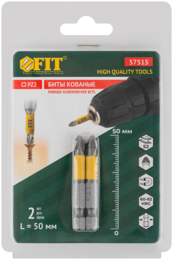 Биты кованые, сталь S2, одностор. 50 мм РZ2, 2шт. Профи, блистер