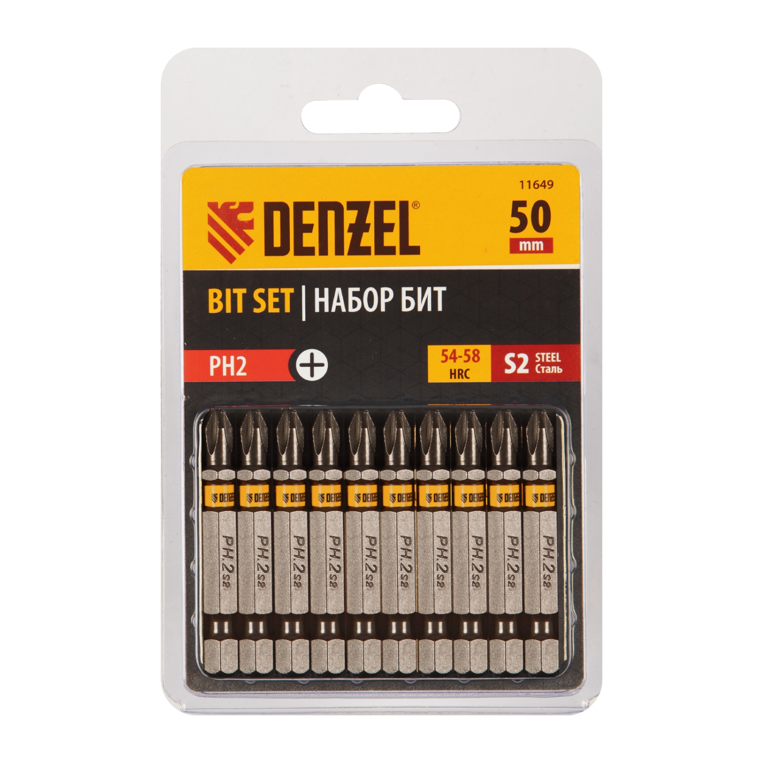 Биты шестигранный профиль сталь S2 PH2х50 Denzel
