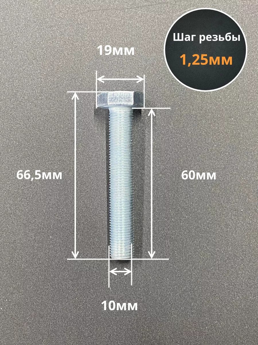 Болт М10х1,25х60 мелкая резьба к.п.10.9 ОЦ DIN961, 10 шт.