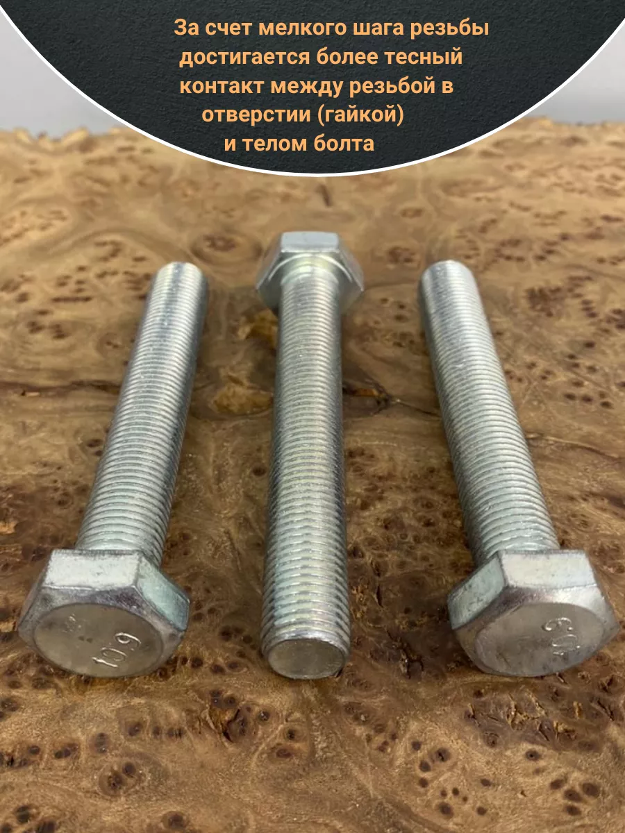 Болт М10х1,25х90 мелкая резьба к.п.10.9 ОЦ DIN961, 10 шт.