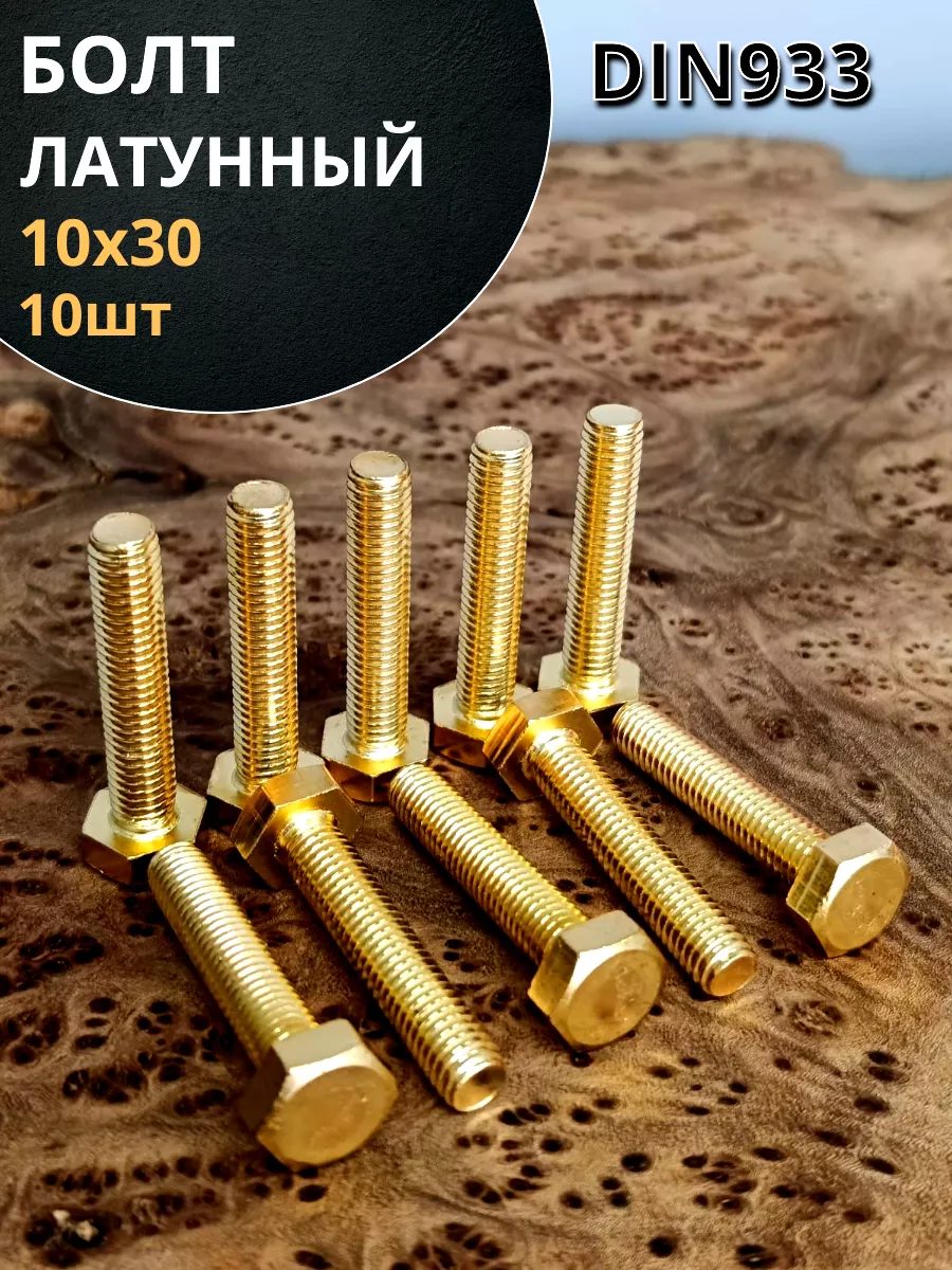 Болт латунный М10х30 DIN933,10 шт