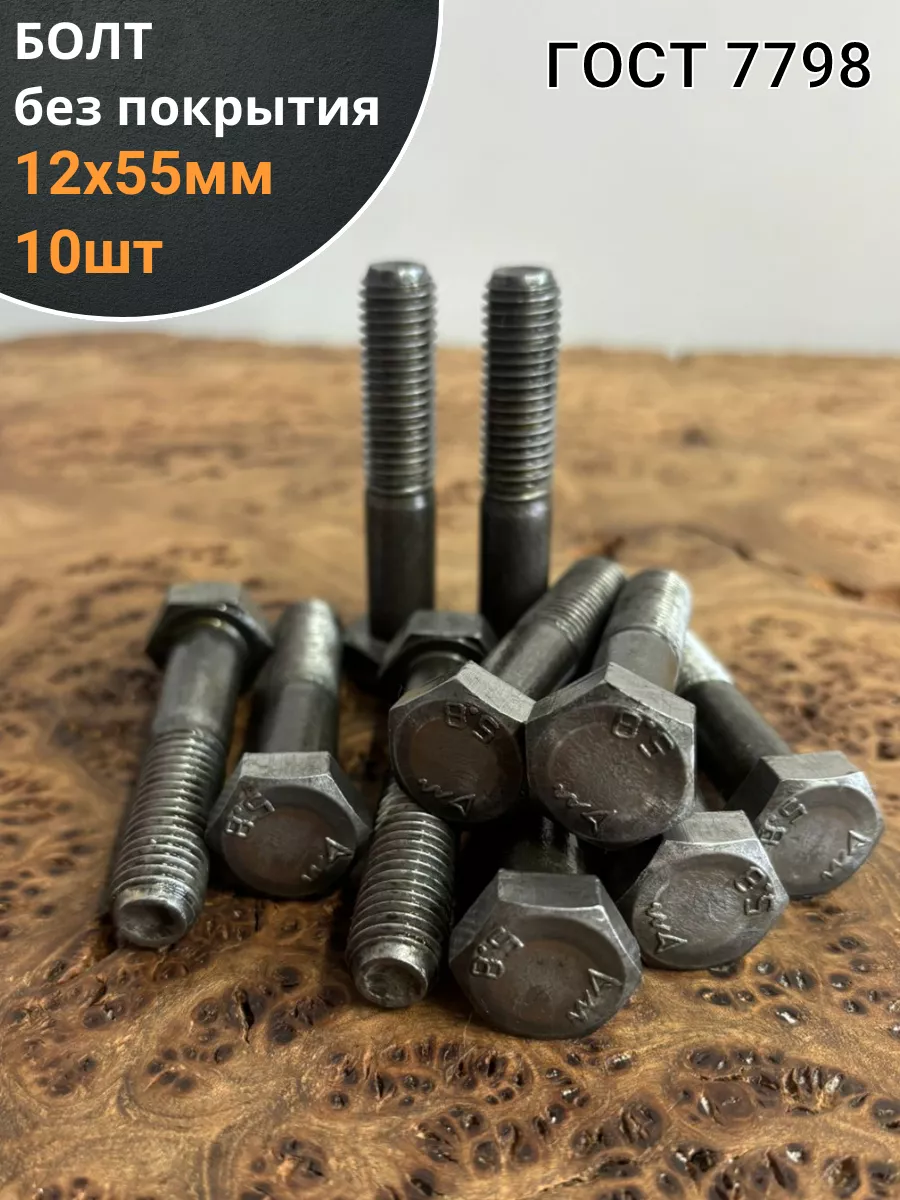 Болт без покрытия 12х55 мм ГОСТ 7798, 10 шт.