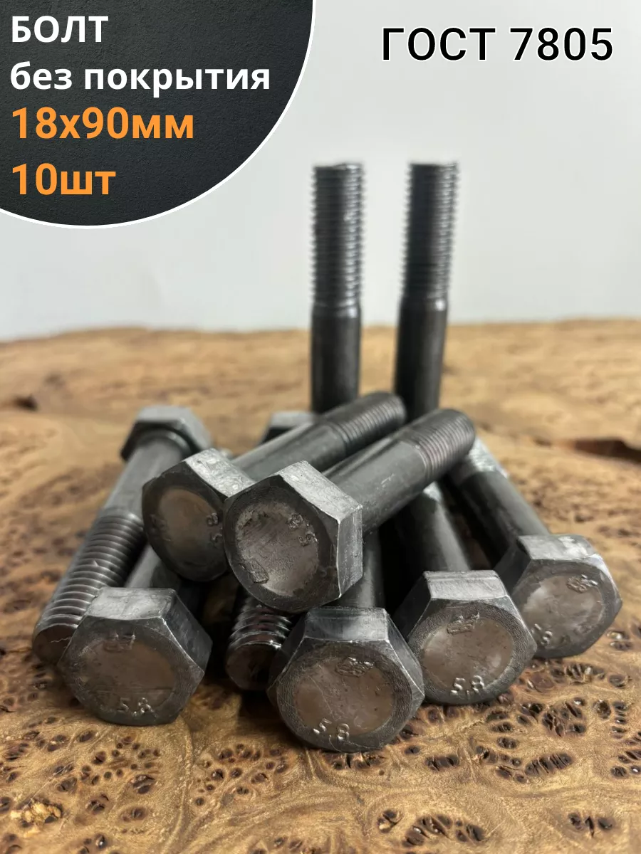Болт без покрытия 18х90 мм ГОСТ 7805, 10 шт.