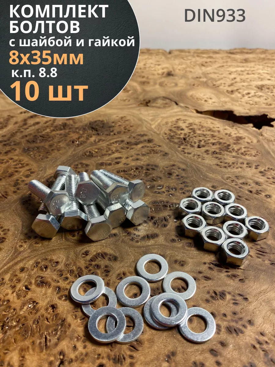 Болт 8х35 мм с гайкой и шайбой ОЦ DIN933 к.п.8.8 (10 шт.)