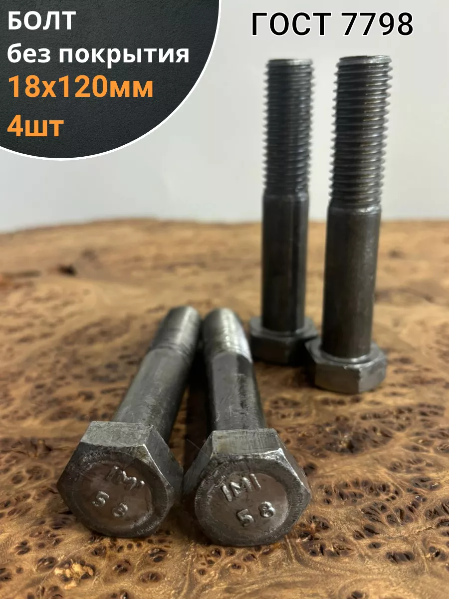 Болт без покрытия 18х120 мм ГОСТ 7798, 4 шт.