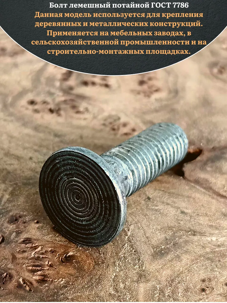 Болт лемешный М12х35 высокопрочный потайной ГОСТ 7786,10 шт