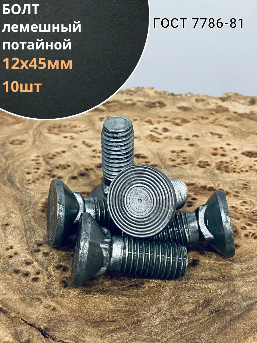 Болт лемешный М12х45 Гост 7786-81 СС-Метиз, 10 шт.