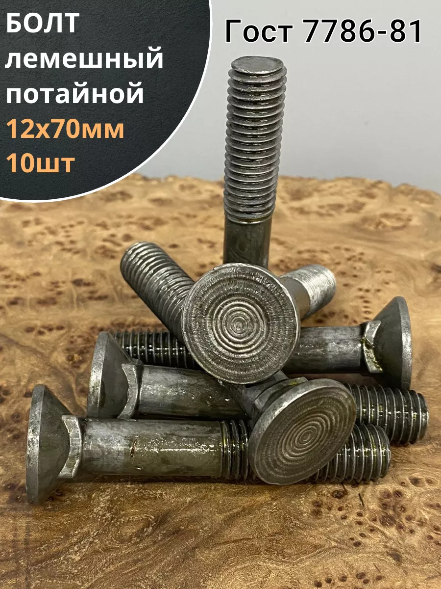 Болт лемешный М12х70 высокопрочный потайной ГОСТ 7786,10 шт