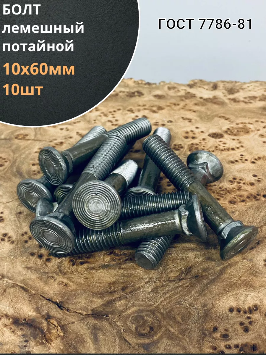 Болт лемешный высокопрочный потайной М10х60 Гост 7786,10 шт