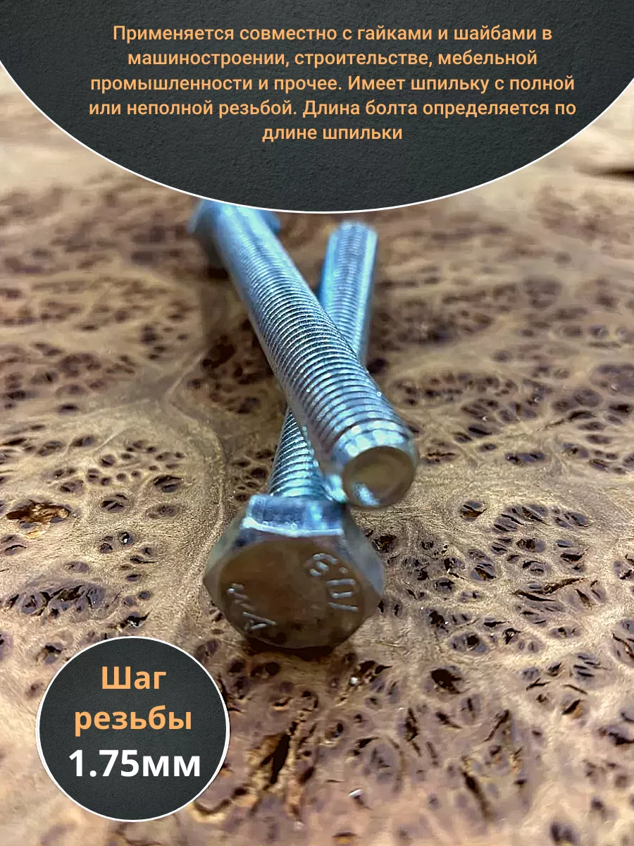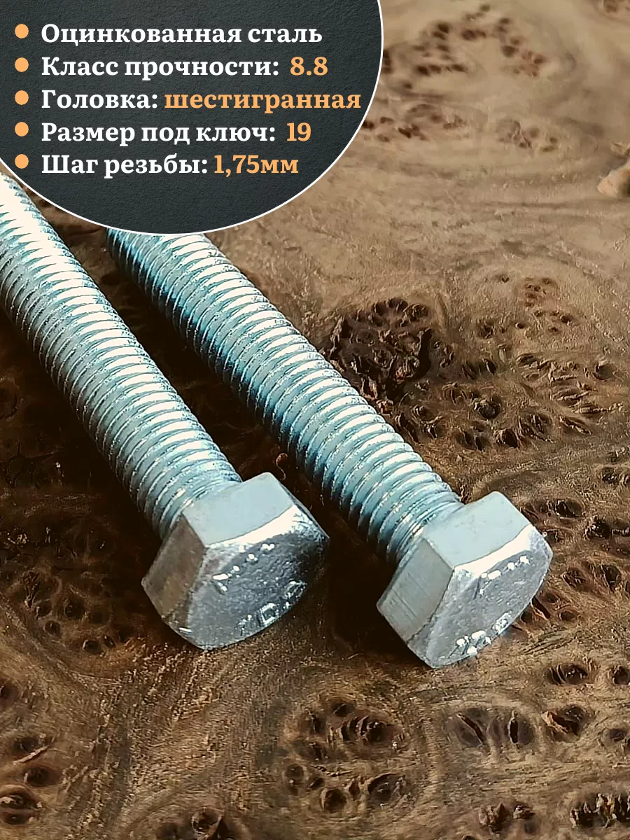 Болт с полной резьбой применяется в легких конструкциях либо, где действует нагрузка, направленная вдоль стержня крепежа. Болт устанавливается в одну конструкцию и фиксирует другую за счет плотно насаженной гайки. Полная резьба болта позволяет применять его при различных размерах скрепляемых элементов. Болт, класс прочности которого 8.8, 10.9 или 12.9 относится к высокопрочным изделиям. Болтовое соединение является очень надежным, что особенно важно при скреплении металлических конструкций. Имеет достаточный антикоррозионный защитный слой. Болт стальной ГОСТ 7798 из стали с классом прочности 10.9 используют при сборке автомобилей, сельскохозяйственной техники и для монтажа трубопроводов. Широко используется на мебельных фабриках и на строительных площадках. Данную модель болта изготавливают из стали с классом прочности 10.9. Он имеет полную резьбу (на всю длину стержня) и шестигранную головку. Диаметр метрической резьбы варьируется от М6 до М48. Материал основания: Сталь, метал, дерево