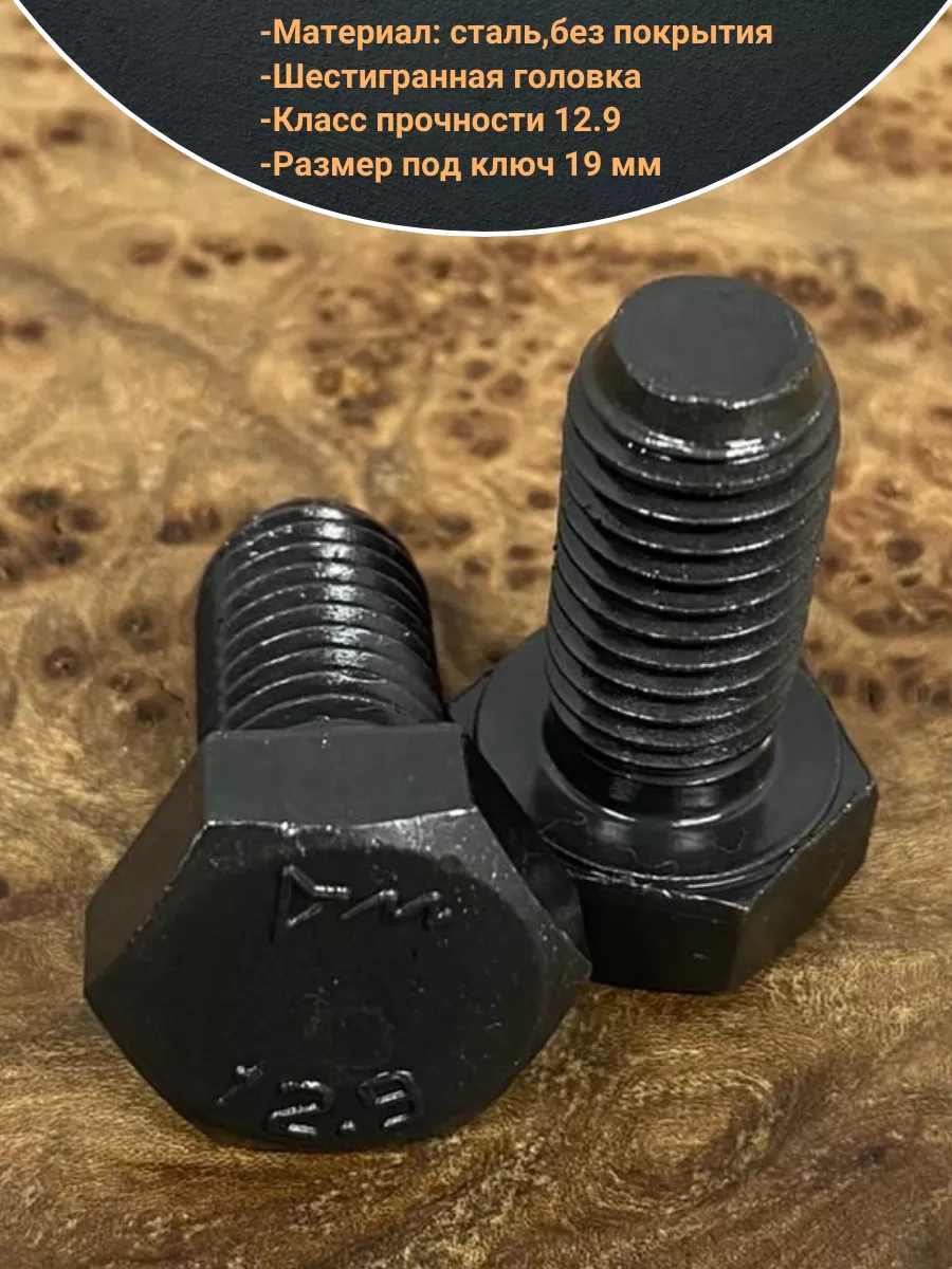 Высокопрочные каленые болты 12.9 с шестигранной головкой применяются при сборке стальных конструкций, к надежности которых предъявляются повышенные требования (тяжелая техника, краны, мосты, гидросооружения и другие ответственные объекты строительной индустрии). Полностью резьбовой стержень лучше подходит для крепления металлов небольшой толщины и позволяет последовательно соединить две и более детали на расстоянии друг от друга, с фиксацией каждой из них при помощи гайки. Защитные металлические покрытия на крепежные изделия класса прочности 12.9 не наносятся, так как в их состав входит хром и другие компоненты, придающие антикоррозийные свойства. Поверхностное оксидирование придает им черный цвет, который нередко бывает предпочтительнее из дизайнерских соображений.
