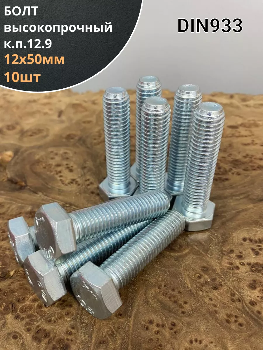Болт 12х50 мм, DIN933, высокопрочный к.п. 12.9, ОЦ , 10шт.