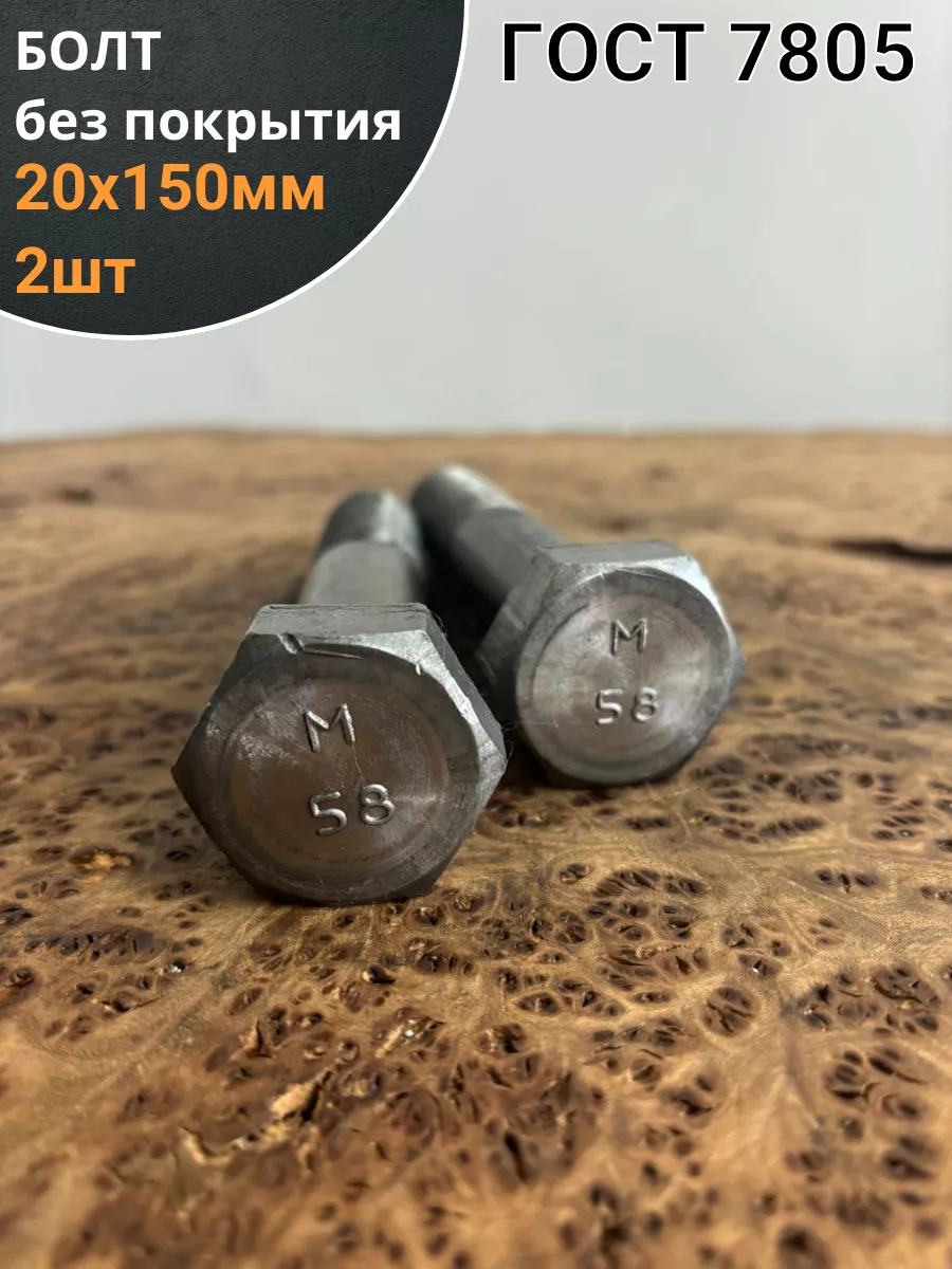Болт без покрытия 20х150 мм ГОСТ 7805, 2 шт.
