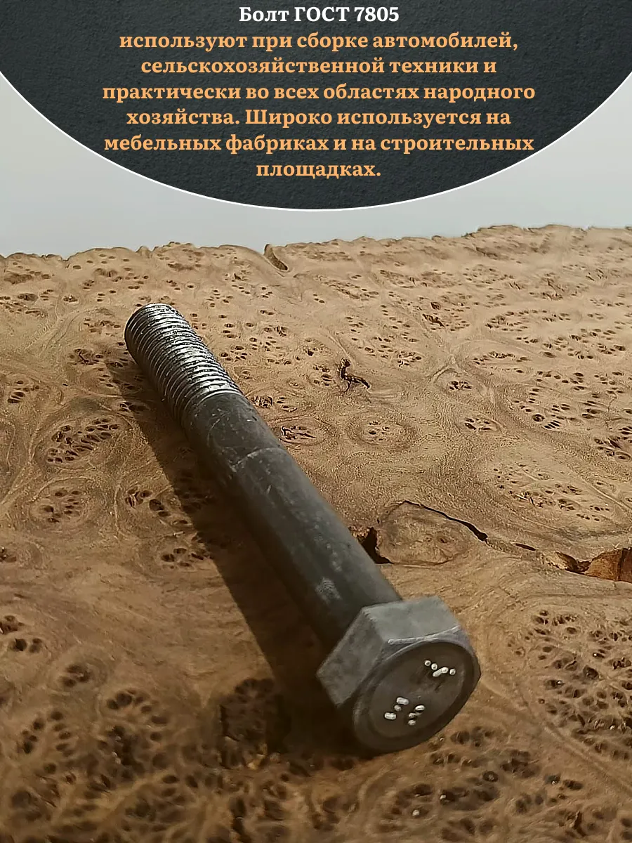 Болт без покрытия 20х200 мм ГОСТ 7805, 2 шт.