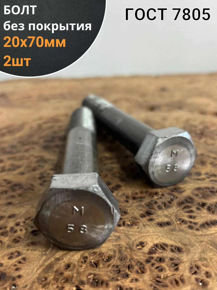Болт без покрытия 20х70 мм ГОСТ 7805, 2 шт.