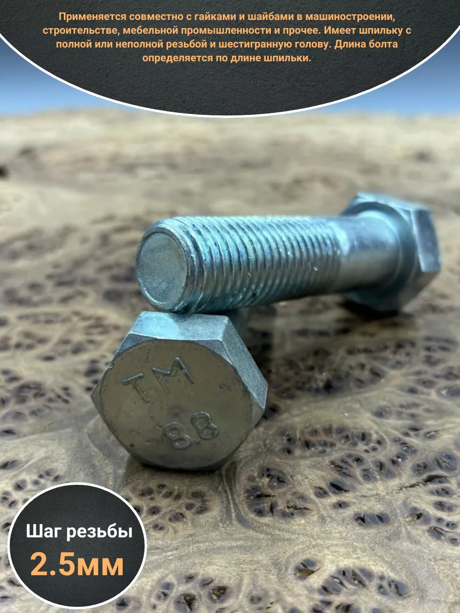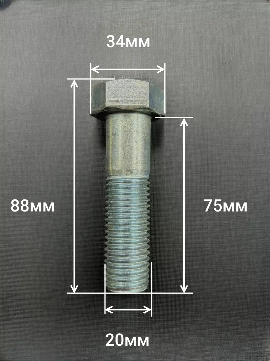 Болт высокопрочный М20х75 мм ОЦ к.п.8.8 DIN931 (2 шт.)