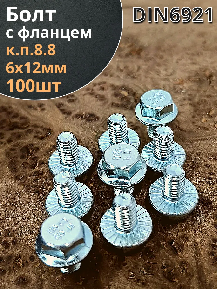 Болт М6х12 с фланцем к.п.8.8 ОЦ DIN6921, (100 шт.)