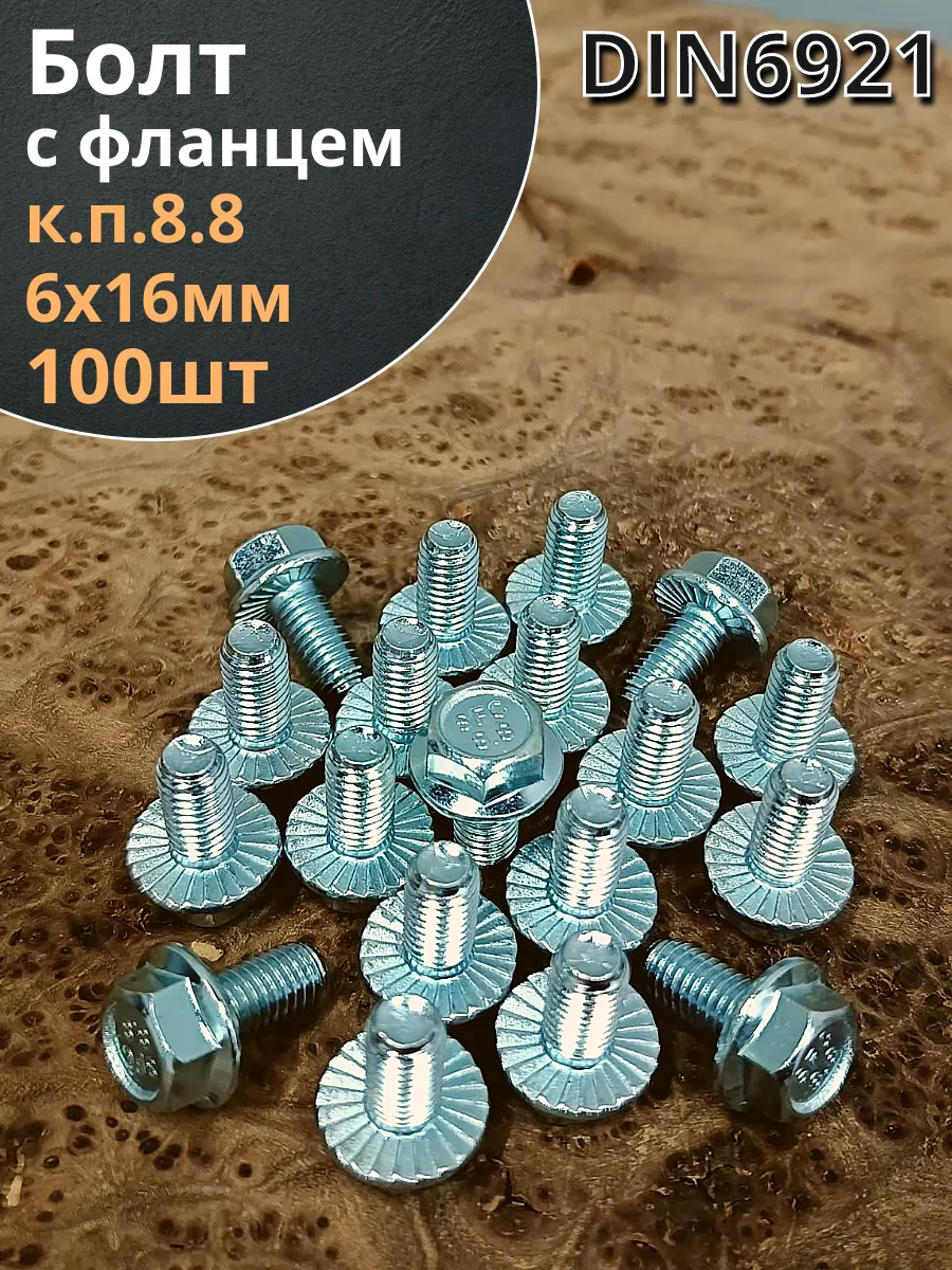 Болт М6х16 с фланцем к.п.8.8 ОЦ DIN6921, (100 шт.)