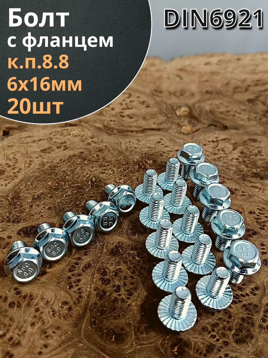 Болт М6х16 с фланцем к.п.8.8 ОЦ DIN6921, (20 шт.)