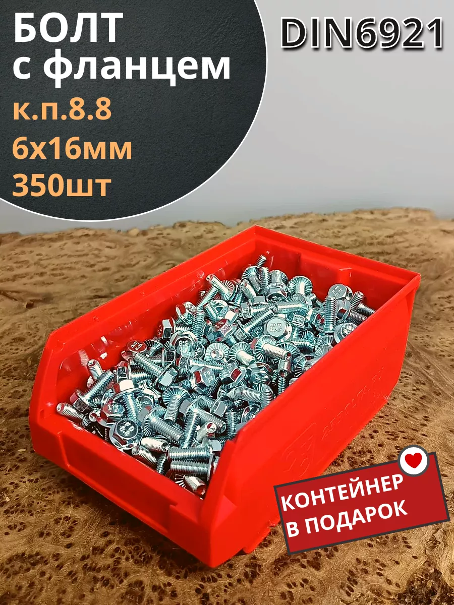 Болт М6х16 с фланцем к.п.8.8 ОЦ DIN6921,(350шт) в контейнере