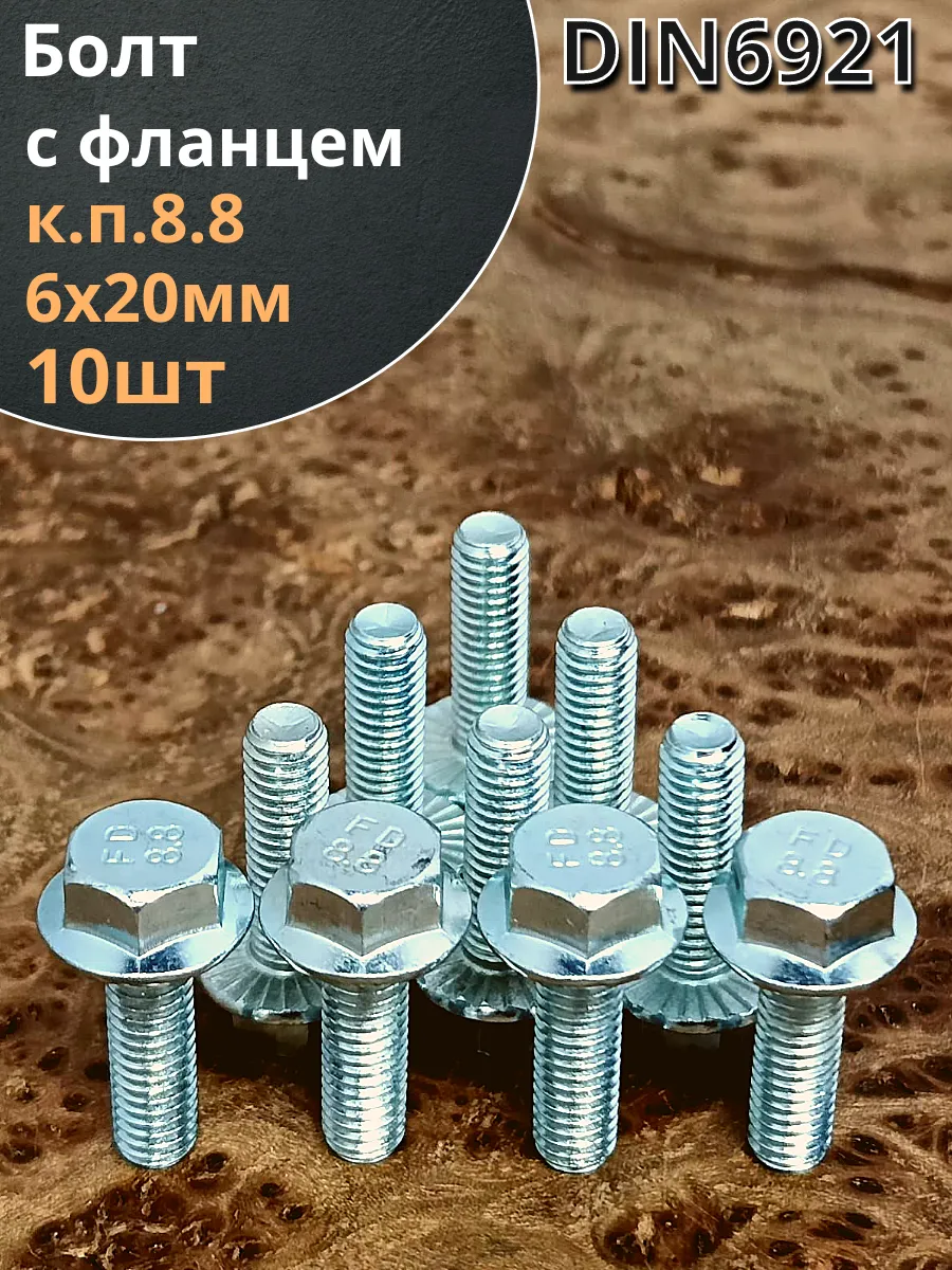 Болт М6х20 с фланцем к.п.8.8 ОЦ DIN6921, (10 шт.)