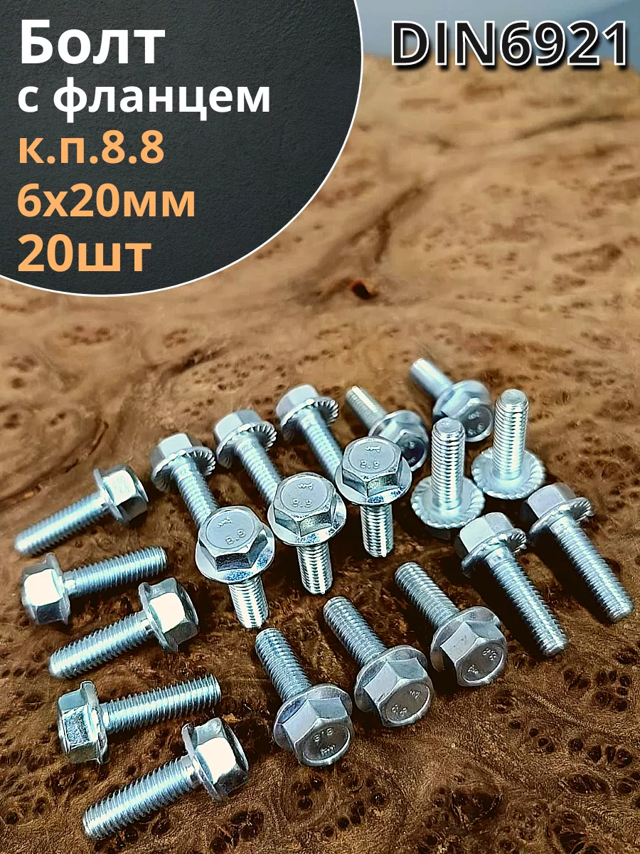 Болт М6х20 с фланцем к.п.8.8 ОЦ DIN6921, (20 шт.)