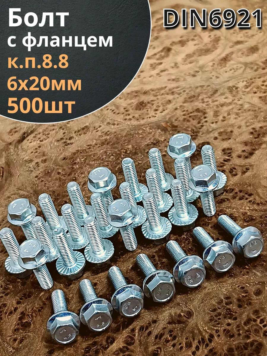 Болт М6х20 с фланцем к.п.8.8 ОЦ DIN6921, (500 шт.)