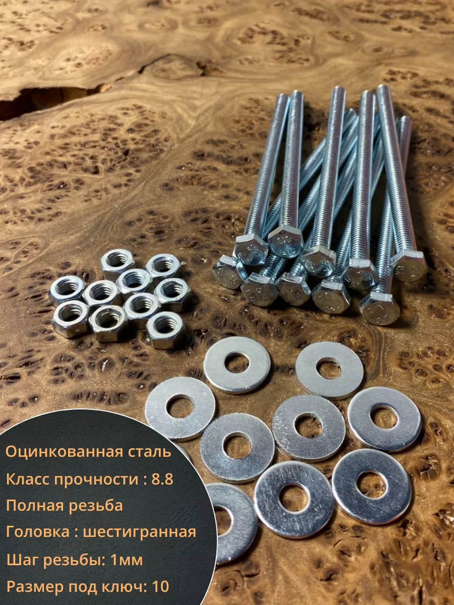 Болт М6х60 мм оцинкованный к.п.8.8 с шайбой и гайкой, 10 шт