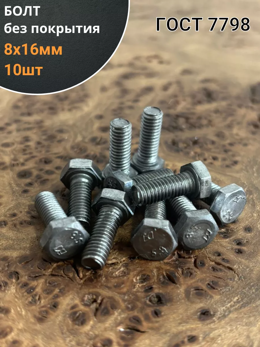 Болт без покрытия 8х16 мм ГОСТ 7798, 10 шт.