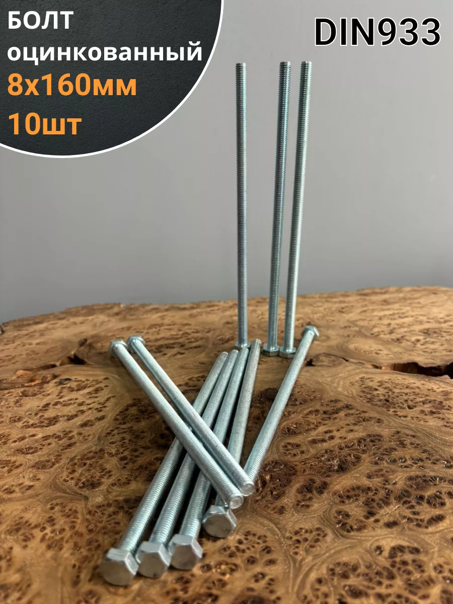 Болт оцинкованный М8х160 DIN933 10 шт.