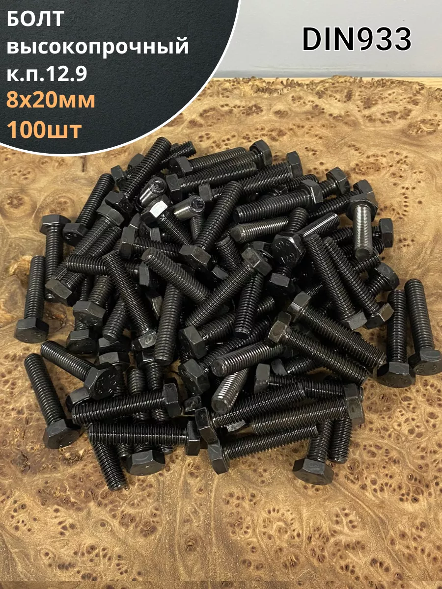 Болт М8х20 мм, DIN933, высокопрочный к.п.12.9, 100шт