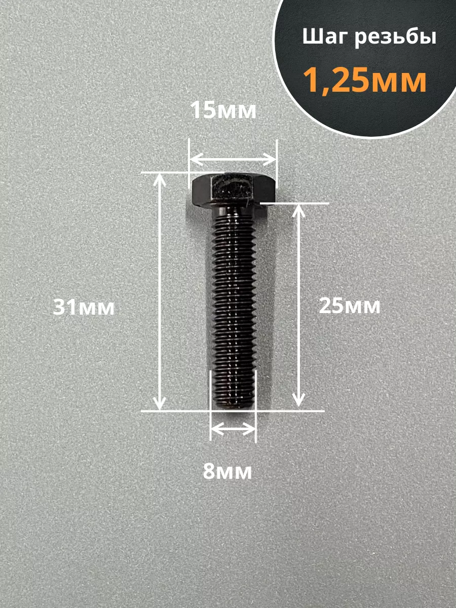 Болт высокопрочный 8х25 мм, DIN933, к.п.12.9 черный, 10шт.