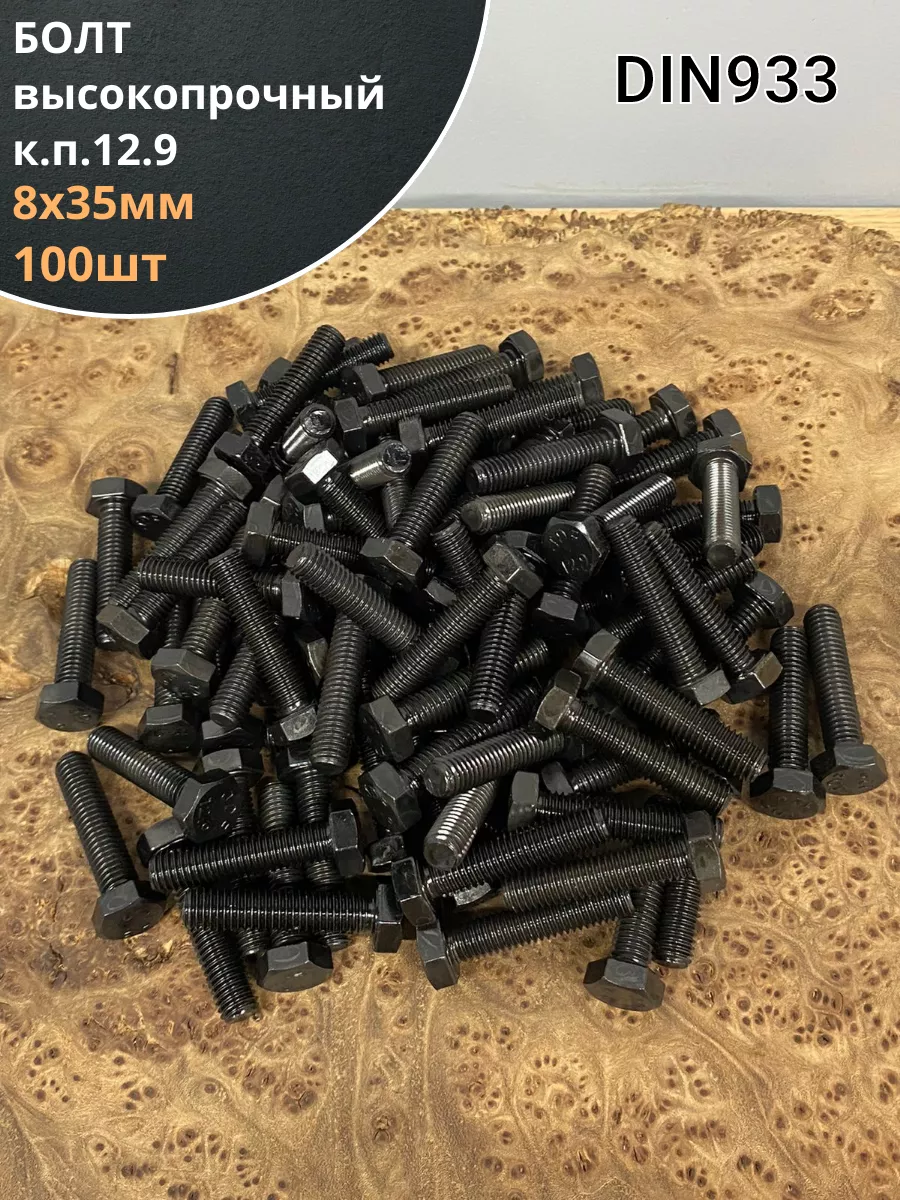 Болт М8х35 мм, DIN933, высокопрочный к.п. 12.9, 100шт.