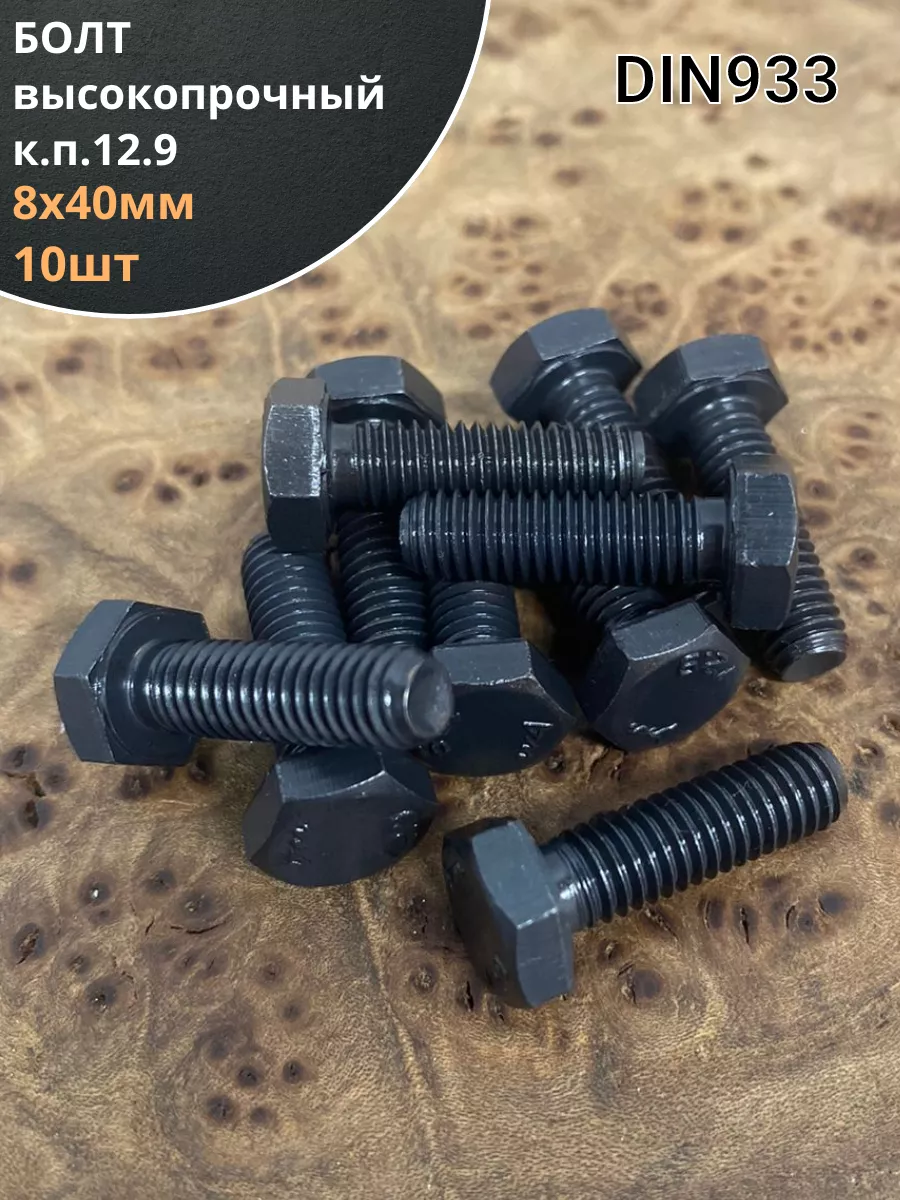 Болт М8х40 мм, DIN933, высокопрочный 12.9, 10шт.