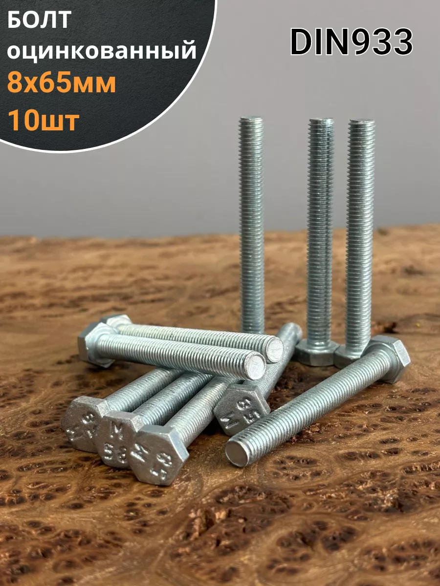 Болт оцинкованный М8х65 DIN933 10 шт.
