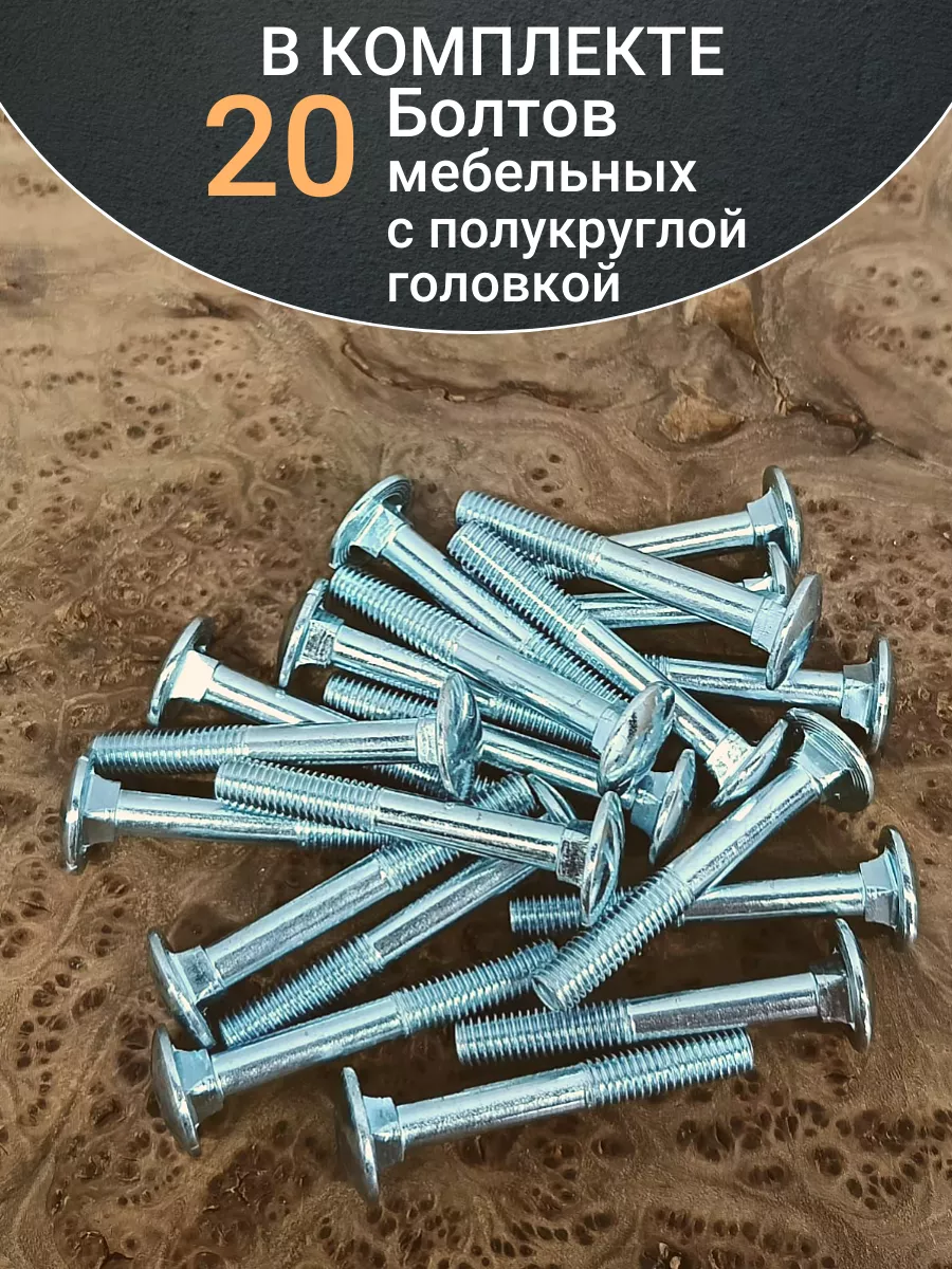 Болт мебельный М10х60 полукруглая головка ОЦ DIN 603,20 шт.
