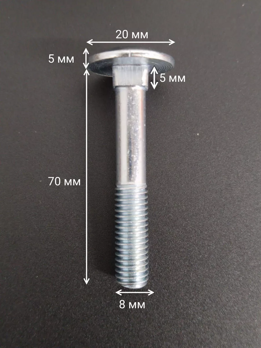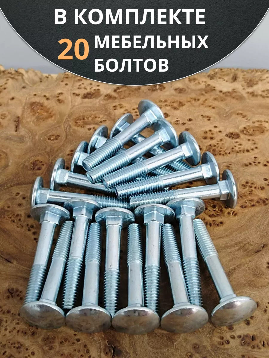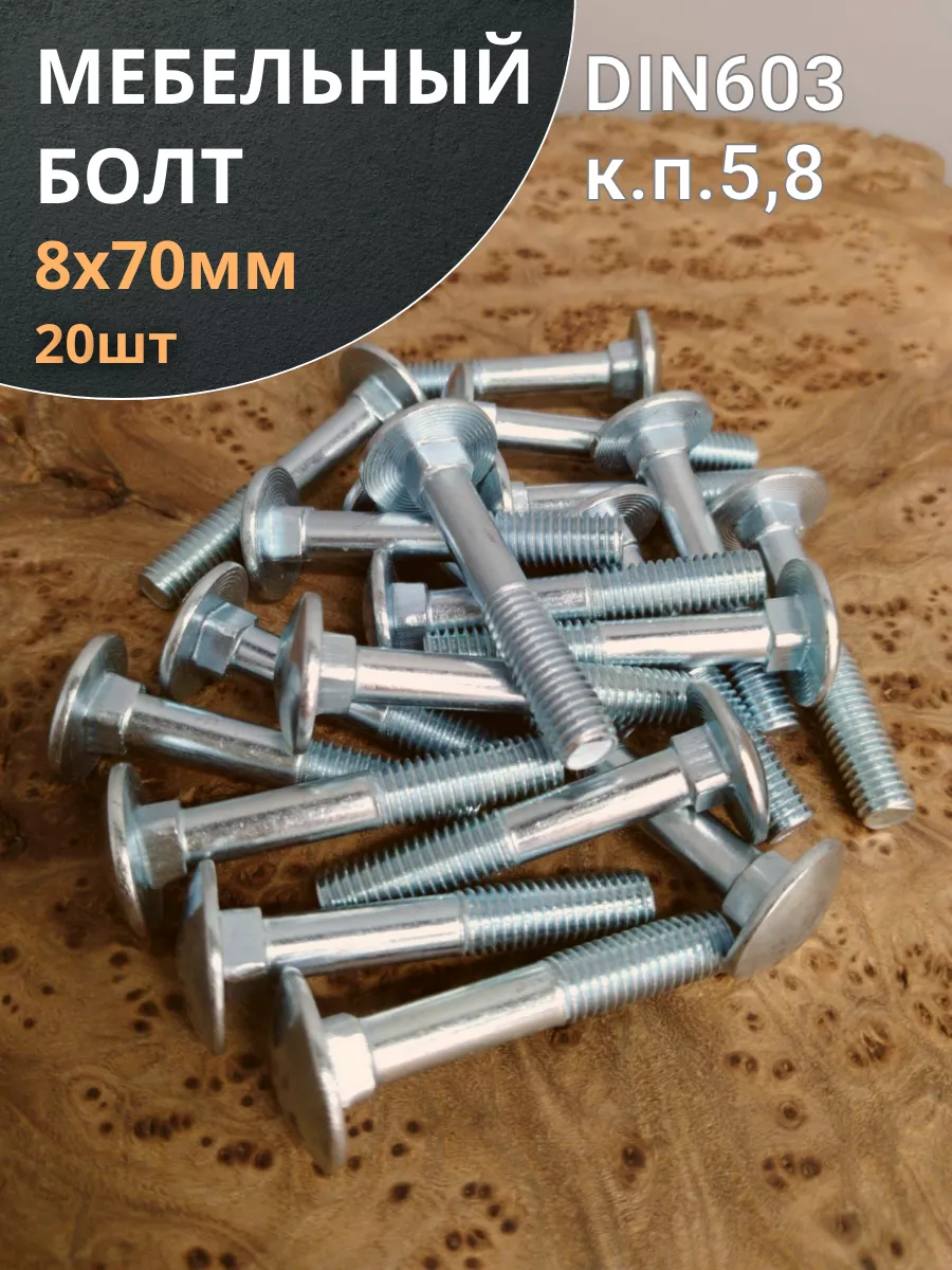 Болт мебельный М8х70 мм полукруглая головка DIN 603, 20 шт