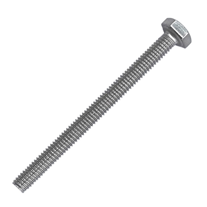 Материалом для болта служит нержавеющая сталь класса A2. У изделия есть цилиндрический стержень c полной резьбой и шестигранная головка. Шляпка передает крутящий момент от ключа к крепежу при завинчивании. Для создания прочных резьбовых соединений крепеж используется в комбинации с шайбой и гайкой или завинчивается в отверстия с нарезанной резьбой. Чтобы исключить электрохимическую коррозию, шайбы с гайкой делаются из коррозионно-устойчивой стали либо нейтральных полимерных материалов.